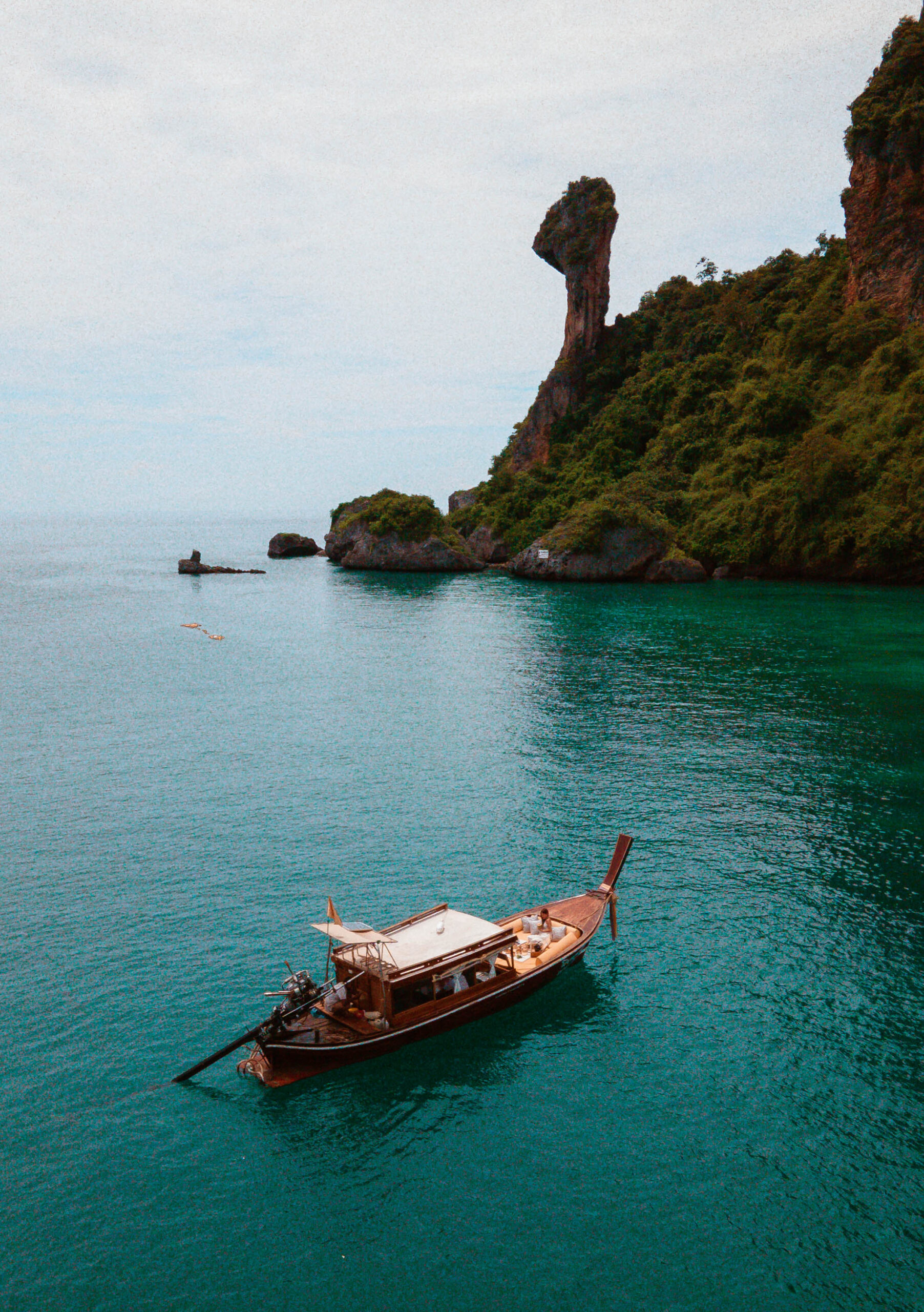 Glide through the crystal-clear waters of the Andaman Sea, visiting Krabi’s most beautiful islands, including Railay Beach, Chicken Island, Poda Island, and Tup Island. This private, bespoke tour combines traditional Thai charm with modern comfort, offering a serene, personalized, unforgettable island-hopping experience.
