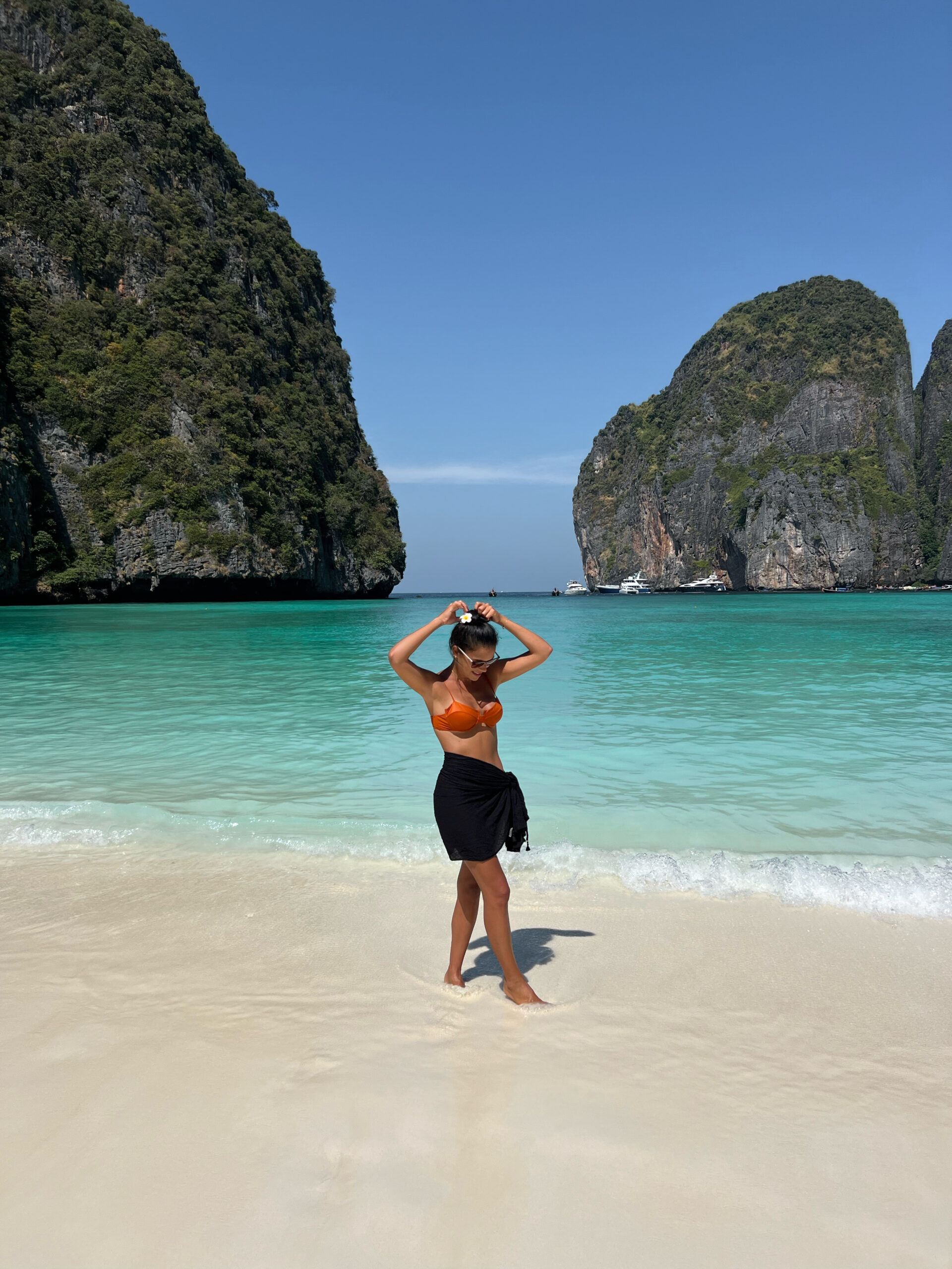 Surrounded by towering limestone cliffs, the bay is known for its crystal-clear waters, white sandy beach, and dramatic natural beauty. Maya Bay gained international fame as the filming location for the movie The Beach starring Leonardo DiCaprio.
